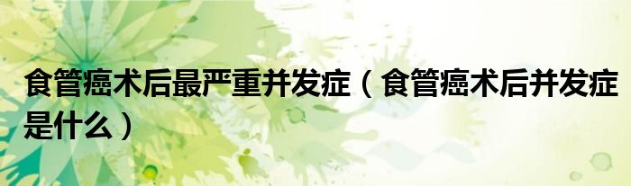 摘要 大家好,小新来为大家解答以上的问题。食管癌术后最严重并发症,食管癌术后并发症是什么很多人还不知道,现在让我们一起来看看吧!1 食管癌
