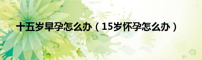 大家好,小新来为大家解答以上的问题。十五岁早孕怎么办,15岁怀孕怎么办很多人还不知道,现在让我们一起来看看吧!