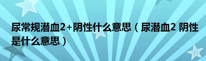 摘要 大家好,小新来为大家解答以上的问题。尿常规潜血2+阴性什么意思,尿潜血2 阴性是什么意思很多人还不知道,现在让我们一起来看看吧!阴性