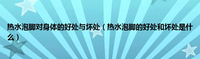 大家好,小新来为大家解答以上的问题。热水泡脚对身体的好处与坏处,热水泡脚的好处和坏处是什么很多人还不知道,现在让我们一起来看看吧!