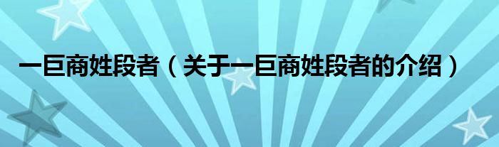 大家好,小新来为大家解答以上的问题。一巨商姓段者,关于一巨商姓段者的介绍很多人还不知道,现在让我们一起来看看吧!