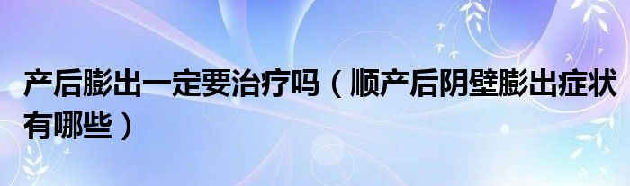 大家好,小新来为大家解答以上的问题。产后膨出一定要治疗吗,顺产后阴壁膨出症状有哪些很多人还不知道,现在让我们一起来看看吧!
