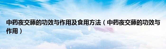 大家好,小新来为大家解答以上的问题。中药夜交藤的功效与作用及食用方法,中药夜交藤的功效与作用很多人还不知道,现在让我们一起来看看吧!