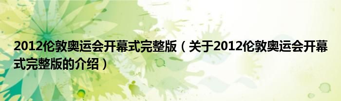 摘要大家好,小新来为大家解答以上的问题。2012伦敦奥运会开幕式完整版,关于2012伦敦奥运会开幕式完整版的介绍很多人还不知道,现在让我们一起