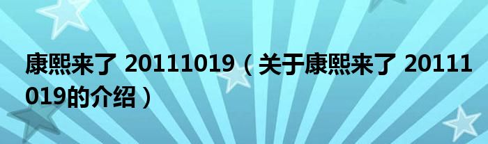 大家好,小新来为大家解答以上的问题。康熙来了 20111019,关于康熙来了 20111019的介绍很多人还不知道,现在让我们一起来看看吧!