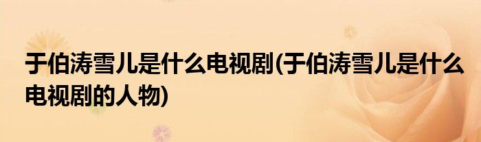 大家好,小天来为大家解答以上问题。于伯涛雪儿是什么电视剧, 于伯涛雪儿是什么电视剧的人物这个很多网友还不清楚,现在让我们一起来瞧瞧吧~!