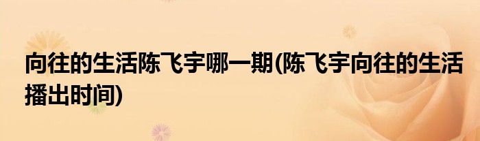摘要大家好,小天来为大家解答以上问题。向往的生活陈飞宇哪一期,陈飞宇向往的生活播出时间这个很多网友还不清楚,现在让我们一起来瞧瞧吧~!