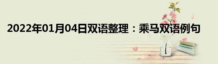 大家好,我是教育新闻网的编辑小语,小语到网上收集了一些与乘马双语例句相关的信息,那么下面分享给大家一起了解下吧。