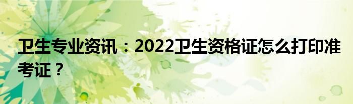 大家好,我是教育新闻网的编辑小中,小中到网上收集了一些与卫生专业资讯:2022卫生资格证怎么打印准考证?相关的信息,那么下面分享给大家一起了解下吧。