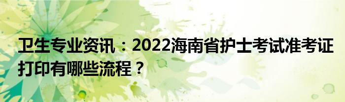 大家好,我是教育新闻网的编辑小中,小中到网上收集了一些与卫生专业资讯:2022海南省护士考试准考证打印有哪些流程?相关的信息,那么下面分享给大家一起了解下吧。