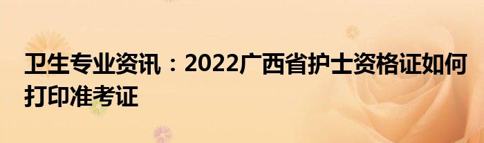 大家好,我是教育新闻网的编辑小中,小中到网上收集了一些与卫生专业资讯:2022广西省护士资格证如何打印准考证相关的信息,那么下面分享给大家一起了解下吧。