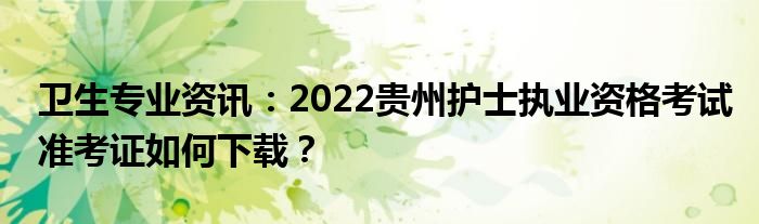 大家好,我是教育新闻网的编辑小中,小中到网上收集了一些与卫生专业资讯:2022贵州护士执业资格考试准考证如何下载?相关的信息,那么下面分享给大家一起了解下吧。