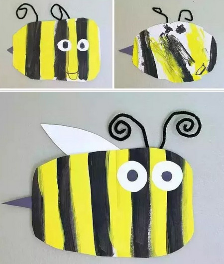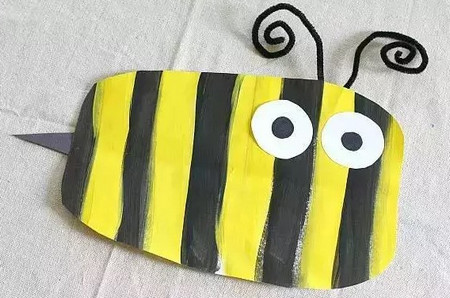 把眼睛、触角和尾巴贴在蜜蜂身上,这样一只纸板做的蜜蜂就完成了。