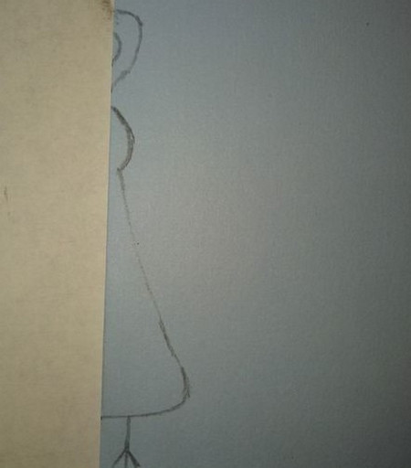 首先准备一张纸板,中间对折,在折处画出孔雀的头和身体。