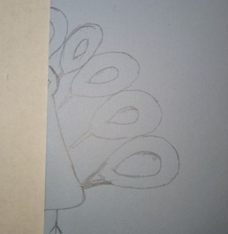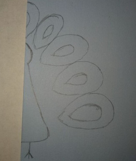 然后依次画更多的孔雀羽毛。从上到下,画出来的孔雀要依次变大,如图: