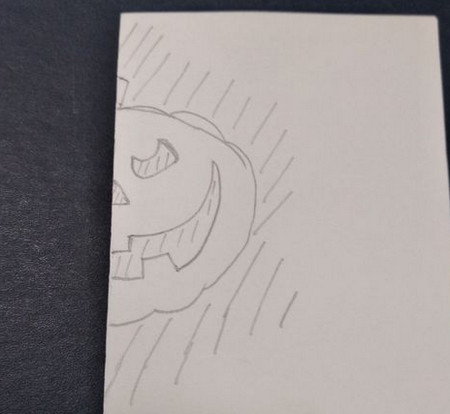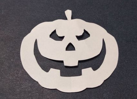 剪完之后,慢慢展开,画的一面朝下,这样万圣节南瓜的剪纸就完成了。