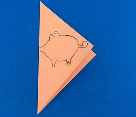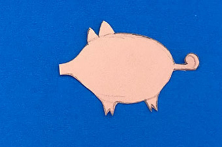 在纸板上画猪的线条。