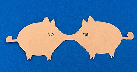最后,展开并画出猪的眼睛,这样一只手切的猪就会被切开。