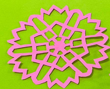 第八步:展开展平,这样关于雪花的剪纸就完成了。