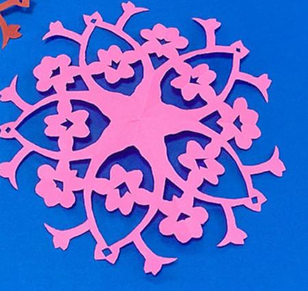 第十一步:展开,这样一个漂亮的梅花剪纸就完成了。