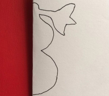 3.接下来,在褶皱处画出你喜欢的葫芦图案。画一半就行了。
