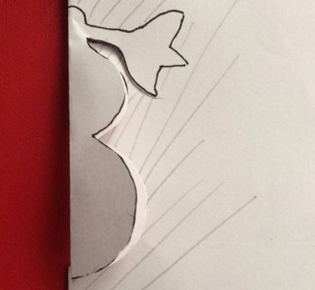 6.然后摊开,翻过来,把干净的一面朝上。这个漂亮的葫芦会被切成纸。