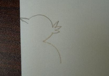 从头羽下端画出完成小脑的头部,然后从鸟的颈部向下画出鸟的圆形身体。
