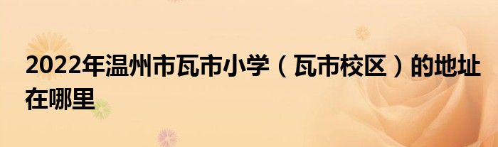 大家好,很多人在询问2022年温州市瓦市小学(瓦市校区)的地址在哪里,下面小编给大家整理出来分享给大家。