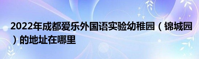 大家好,很多人在询问2022年成都爱乐外国语实验幼稚园(锦城园)的地址在哪里,下面小编给大家整理出来分享给大家。