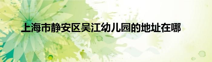 大家好,很多人在询问上海市静安区吴江幼儿园的地址在哪,下面小编给大家整理出来分享给大家。