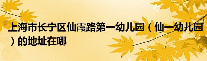 大家好,很多人在询问上海市长宁区仙霞路第一幼儿园(仙一幼儿园)的地址在哪,下面小编给大家整理出来分享给大家。