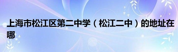 大家好,很多人在询问上海市松江区第二中学(松江二中)的地址在哪,下面小编给大家整理出来分享给大家。