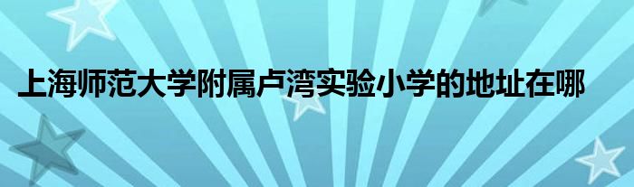 大家好,很多人在询问上海师范大学附属卢湾实验小学的地址在哪,下面小编给大家整理出来分享给大家。