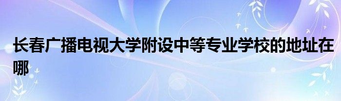 大家好,很多人在询问长春广播电视大学附设中等专业学校的地址在哪,下面小编给大家整理出来分享给大家。