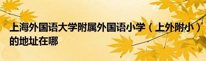 上海外国语大学附属外国语小学(上外附小)的地址解答: