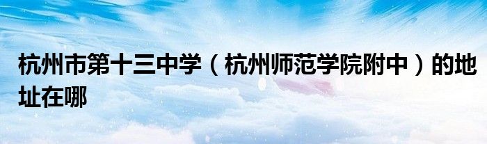 大家好,很多人在询问杭州市第十三中学(杭州师范学院附中)的地址在哪,下面小编给大家整理出来分享给大家。