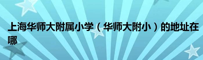 大家好,很多人在询问上海华师大附属小学(华师大附小)的地址在哪,下面小编给大家整理出来分享给大家。
