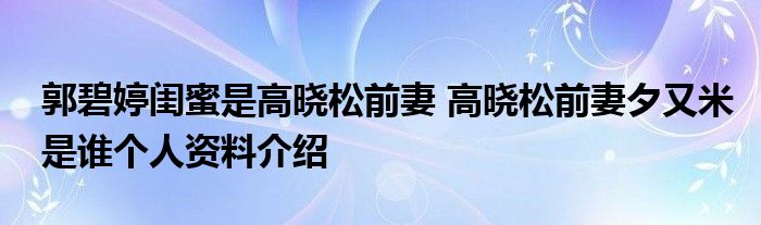 据悉,夕又米是郭碧婷的多年好闺蜜。随后,网友又发现郭碧婷闺蜜夕又米竟是高晓松前妻,让人感叹娱乐圈太小.夕又米,本名徐粲金,与高晓松于2007年2月结婚,婚后育有一女,于2013年6月签署离婚协议.