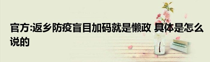 官方:返乡防疫盲目加码就是懒政