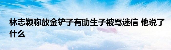 【林志颖称放金铲子有助生子被骂迷信】4月18日深夜,林志颖在社交平台晒出一张手举着金铲子的自拍照,照片背景是某公司的工程开工仪式,而此照片的配文引发了舆论的不满。