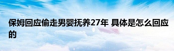 日前,一则保姆偷走男婴抚养27年的新闻,引发网友热议,如今保姆回应此事,一起来看看具体怎么回应的。