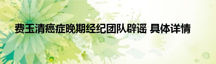 【费玉清癌症晚期?经纪团队辟谣】11月30日上午,费玉清方在社交平台上发布澄清有关费玉清本人癌症晚期的消息,表示:"小哥一切都好,请大家勿信谣传谣"。