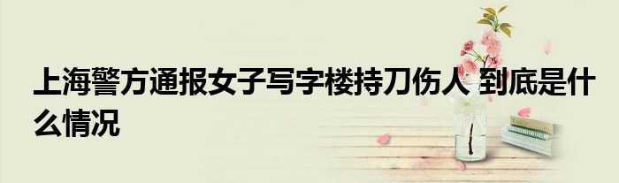 【#上海警方通报女子写字楼持刀伤人#】新闻报道汇总,日前,一女子在江苏路某商务楼持刀划伤5人,上海警方通报称,该女子已被控制。
