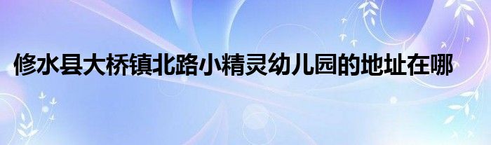 大家好,很多人在询问修水县大桥镇北路小精灵幼儿园的地址在哪,下面小编给大家整理出来分享给大家。