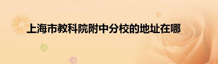 大家好,很多人在询问上海市教科院附中分校的地址在哪,下面小编给大家整理出来分享给大家。