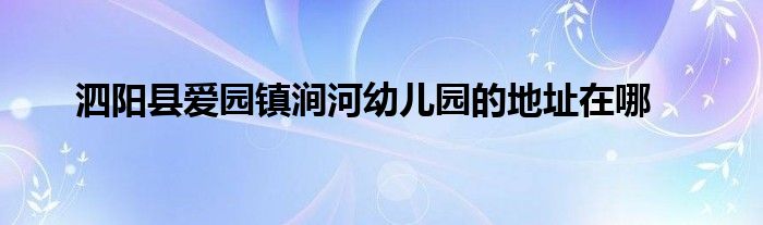 泗阳县爱园镇涧河幼儿园的地址解答: