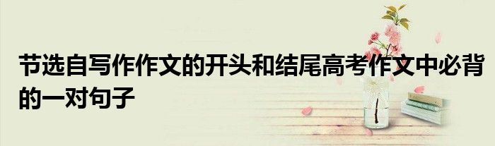 写作文的开头和结尾是很有必要的。1.雪是沉默的,它静静地走着。田野感激它的滋养,诗人歌唱它的壮丽,它只有白色的寂静。这首名为《雪》的诗深深震撼了我的心灵。作者对雪的沉沦之恋,在我心中唤起了强烈的共鸣!对于生长在祖国北疆,千里冰封,万里雪飘的孩子来说,最熟悉的就是雪。我对雪的深情难以用语言表达。