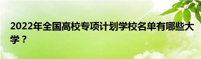 2022年高校专项计划包括北京大学、清华大学、北京化工大学、北京林业大学、中国传媒大学、中国地质大学(北京)、北京外国语大学、中国矿业大学(北京)、北京科技大学、华北电力大学、北京语言大学、中国石油大学(北京)、北京师范大学、对外经济贸易大学、北京交通大学、中国政法大学、北京航空航天大学等。