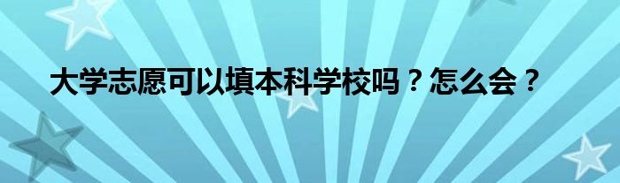不能通过志愿填报本科院校。考生志愿是指所选择的院校和专业,是其志向、愿望、爱好、性格和能力的综合反映。志愿填报实际上是考生和院校之间的“双向选择”。平行志愿是按照填报顺序依次搜索的,所以上线失败的可能性大大降低。所以要注意志愿和专业从高到低的填报顺序。同时,一旦批次被拒就失败了,选择专业和学校还是要谨慎。