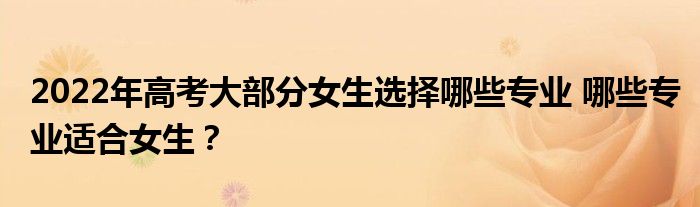 2022高考女生选择最多的专业有:小语种、旅游管理、播音与主持、财政金融、形象设计、新媒体、心理学、文化产业管理等。